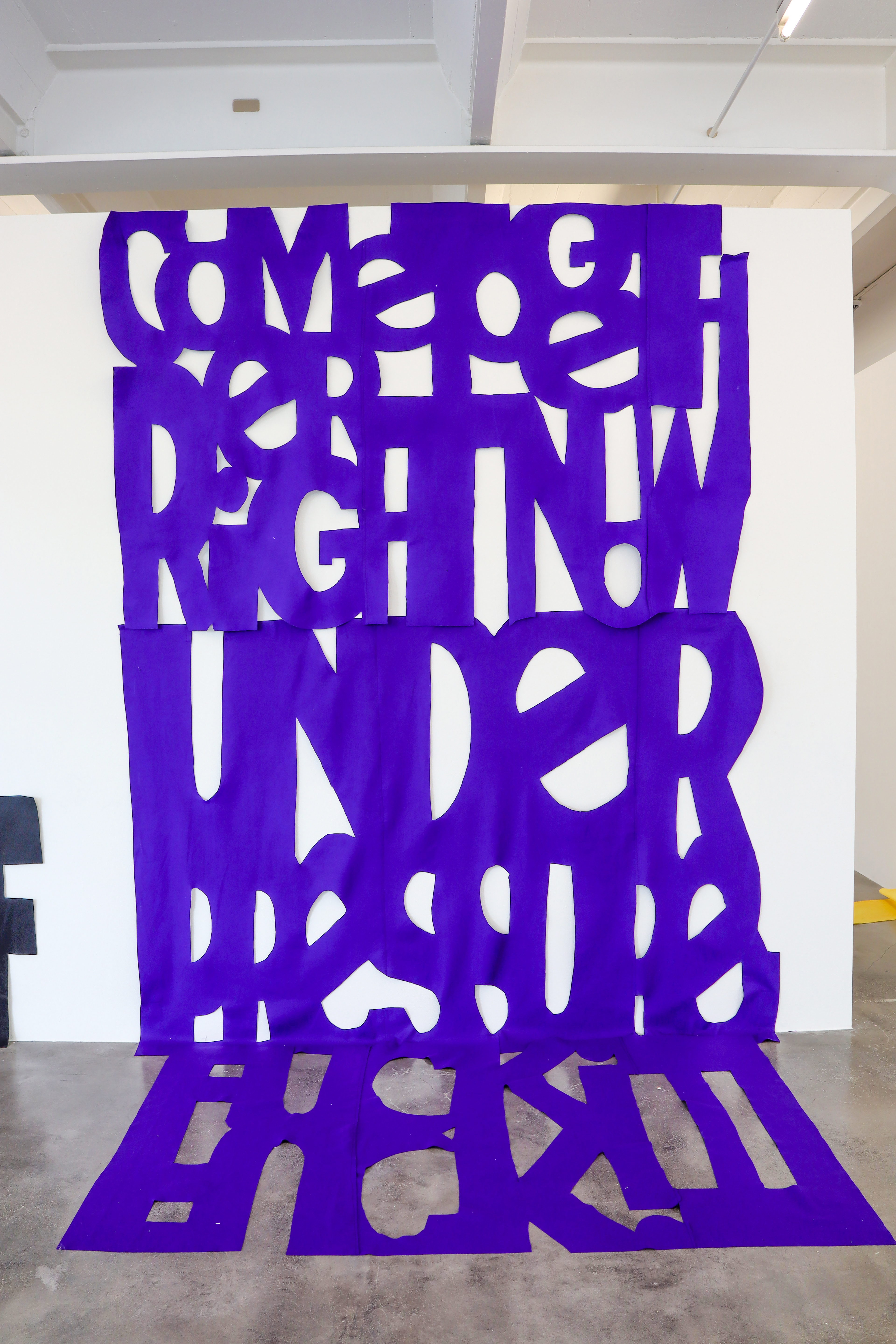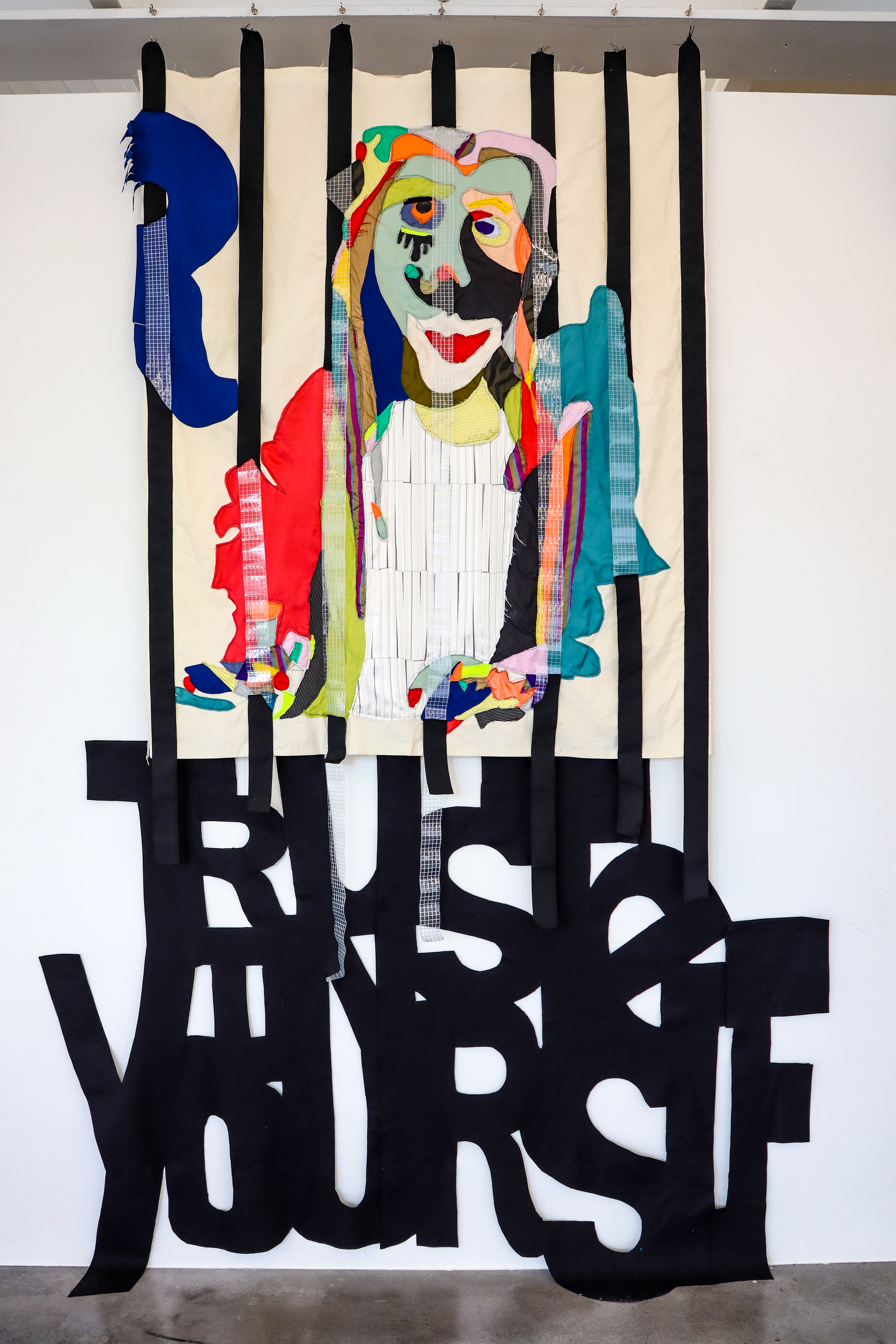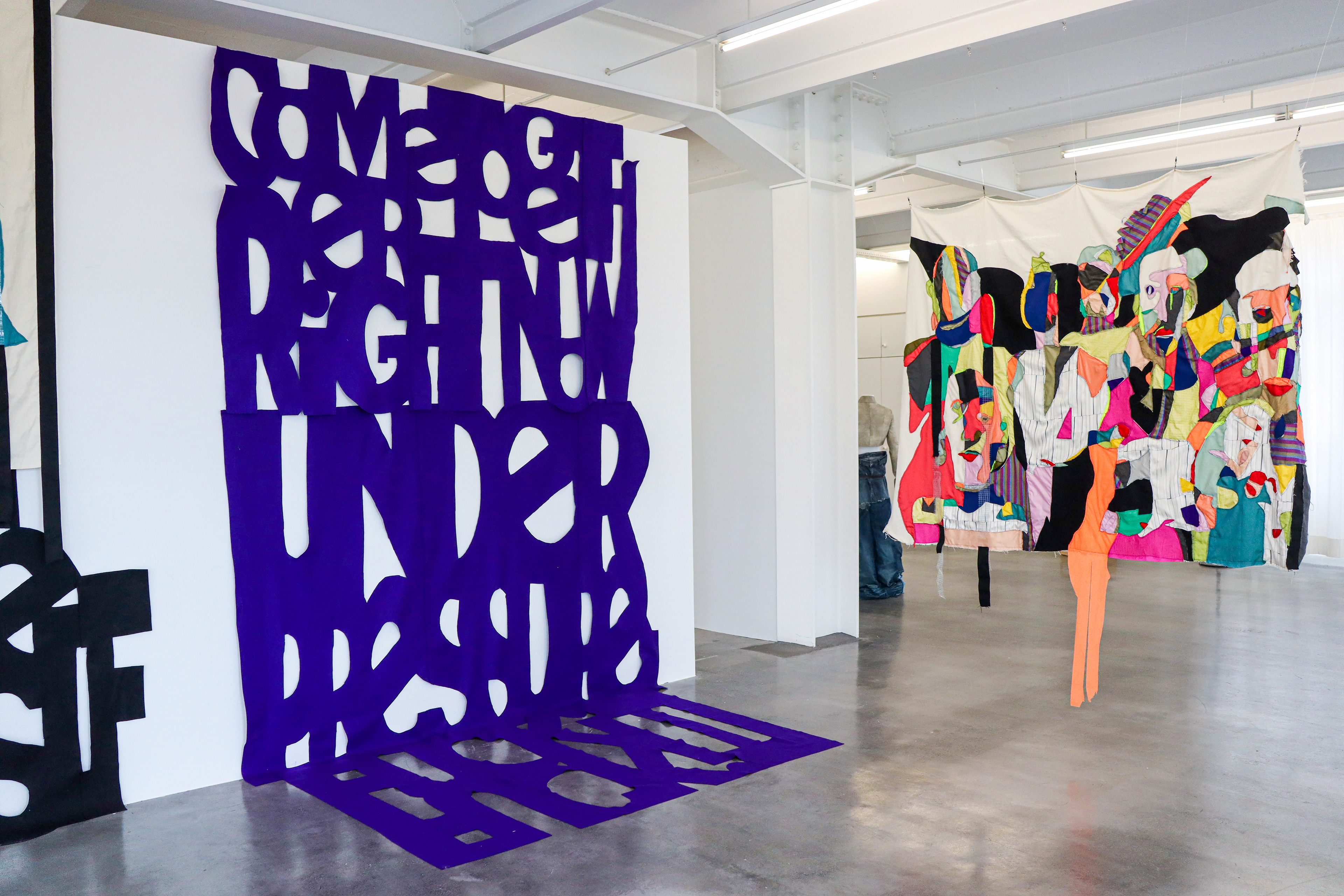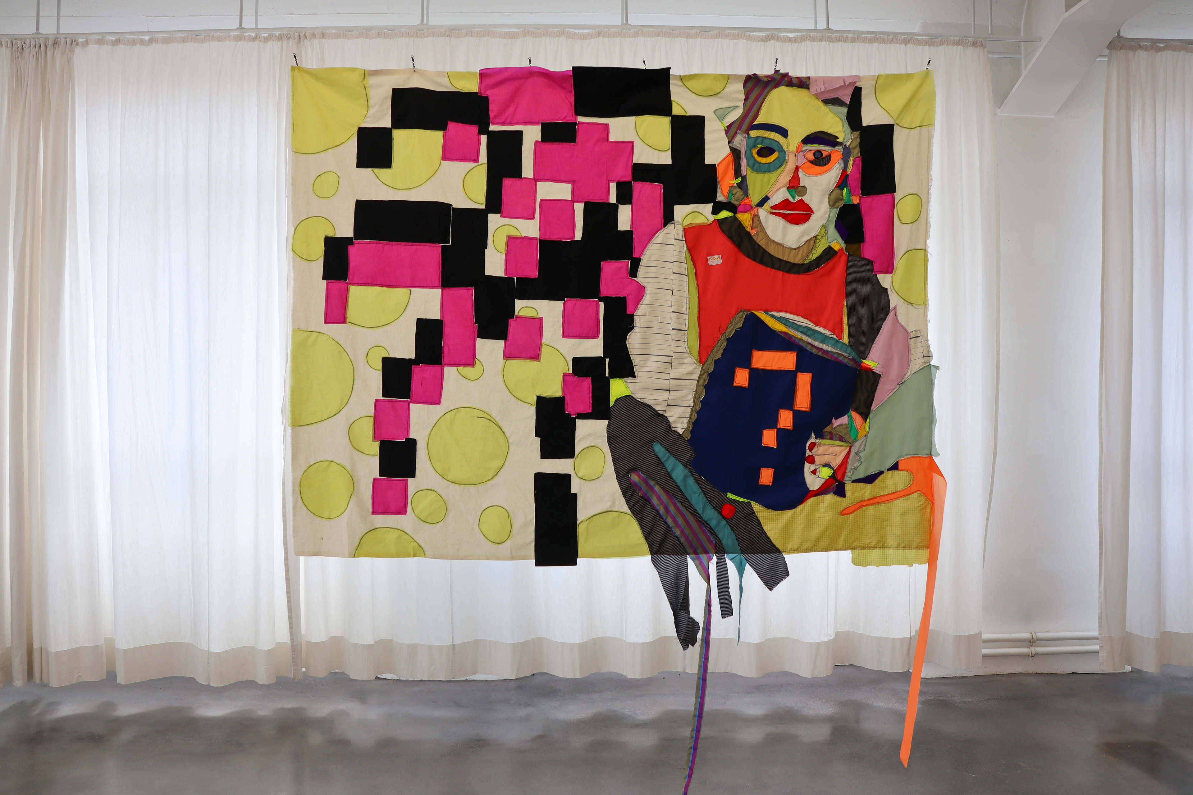 From Rags to Roots ist eine großformatige textile Installation, die Fragmentierung als Ausgangspunkt für Identitätsbildung und künstlerische Selbstverortung untersucht. Aus Stoffresten, textilen Zeichnungen und typografischen Elementen entsteht eine vielschichtige Collage, in der Brüche sichtbar bleiben und neu zusammengesetzt werden.